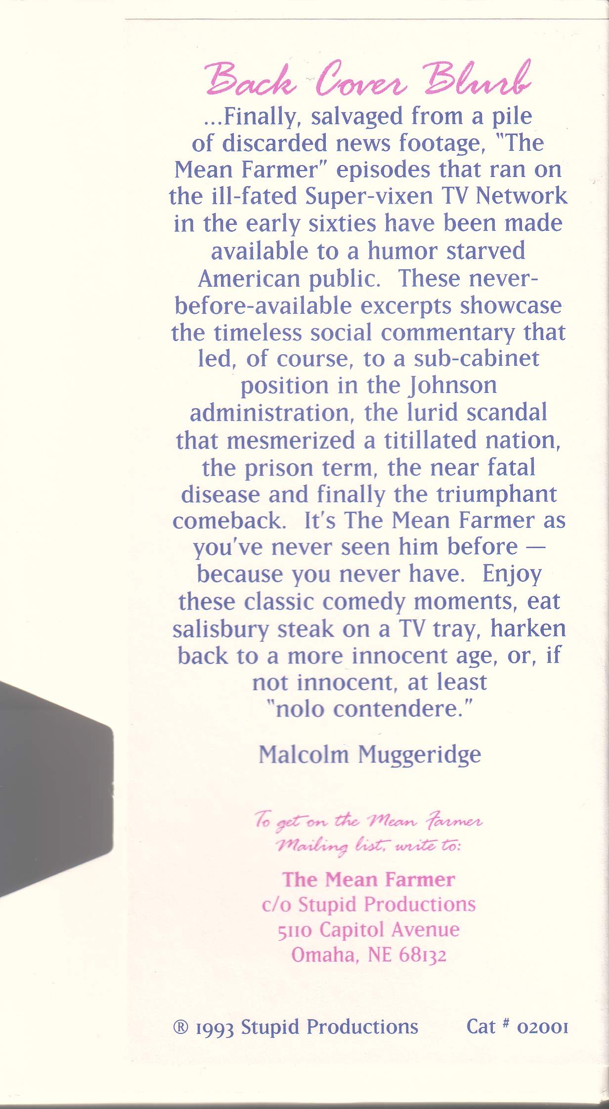 Parent Directory - The Mean Farmer (nothing to do with the huskers).jpg 2010-06-01 12:24 276K The Mean Farmer - The Lost Episodes - Back.jpg 2010-06-01 12:24 222K The Mean Farmer - The Lost Episodes - Front.jpg 2010-06-01 12:24 191K The Mean Farmer - The Lost Episodes - Spines.jpg 2010-06-01 12:24 145K The Mean Farmer Meets Space Commander Wack.jpg 2010-06-01 12:24 443K